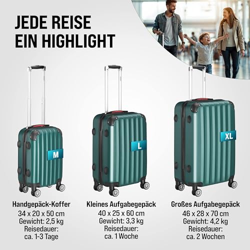 MONZANA® 3-delige Kofferset Cijferslot Organisers Wasgoed Weegschaal Gelkussens Dubbele Wielen Antislippootjes Riem Hardcase Trolleys Reiskoffers Koffers Handbagage M L XL